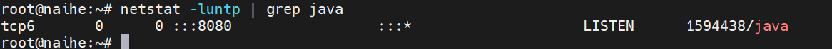 运行此命令安装netstat工具,然后执行以下命令检查所有监听的端口及对应的进程信息,重点关注Java项目的端口: