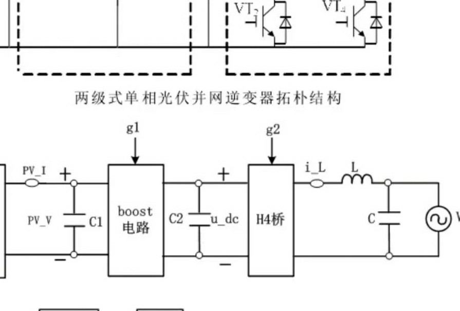 本次设计采用两级架构。前级是boost升压电路,它的作用是将光伏电池输出的较低电压提升到适合后级逆变的电压水平。后级则是H4/全桥逆变电路,负责将直流电逆变为交流电。