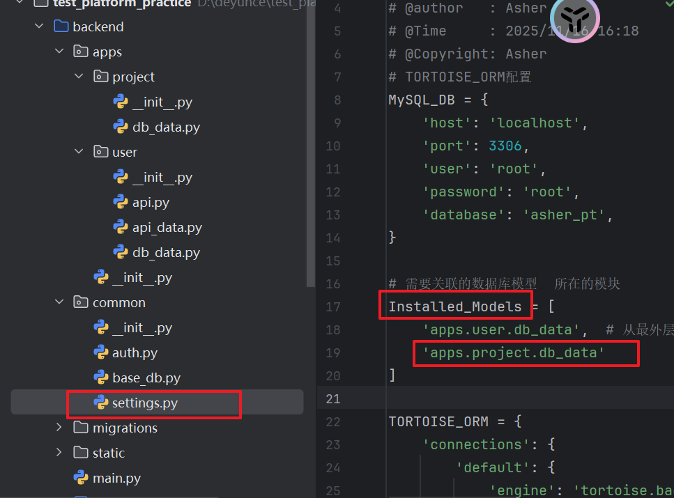 common目录里面添加setting.py,新建的数据库文件需要加入到Installed_Models