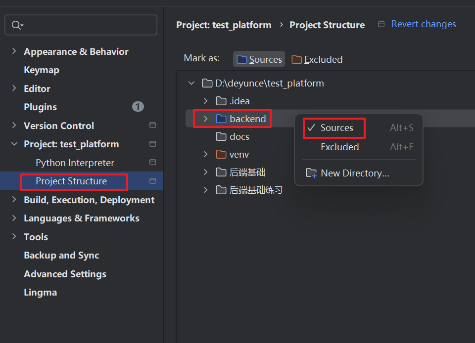 项目名称:backend,把后端设置成项目的根目录