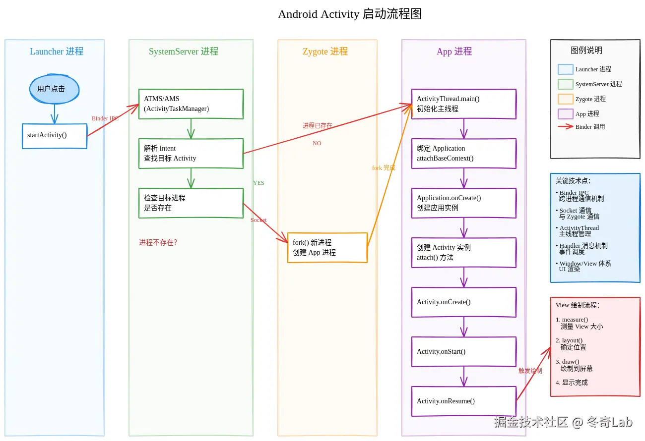 下面就是各自发挥的时候了。重新启动下claude code,让它加载到这个新增的SubAgent,然后通过提示词让它画你想要画的内容。比如我尝试了下"使用技术画图agent来绘制Android Activity启动流程图"