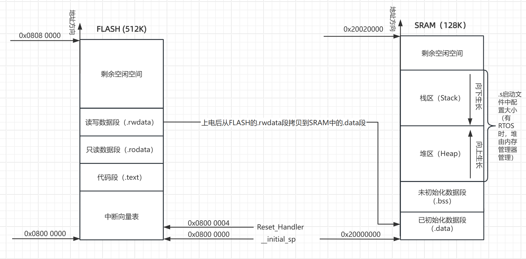 - 启动代码负责把这块数据拷贝到 SRAM 的 .data 段