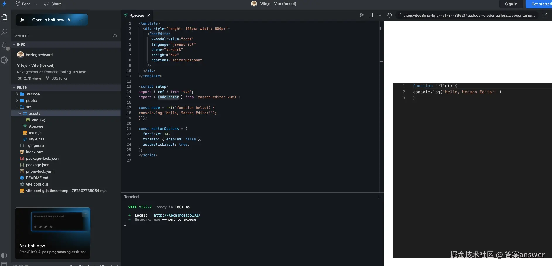 因为是在Vue3项目中所以这里直接使用 monaco-editor-vue3 这个插件会更加便捷