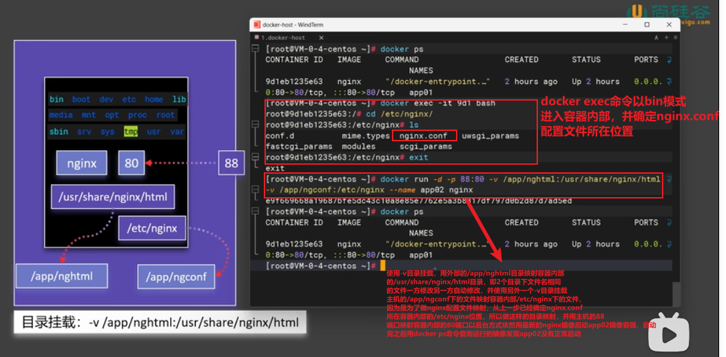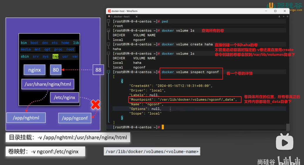 如下第一张截图例子:-v ngconf:/etc/nginx,意思是在启动时会在主机创建一份和容器内部/etc/nginx目录下所有相同的文件,卷名称叫ngconf,则这个时候启动的时候主机的nginx.conf文件不为空