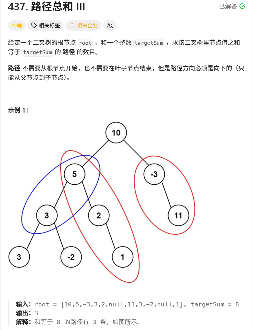 本题和"和为k的子数组 有异曲同工之妙",思路也相似。可以用一个哈希表去存储每条路径的和,两条路径和只差即为中间路径的和。