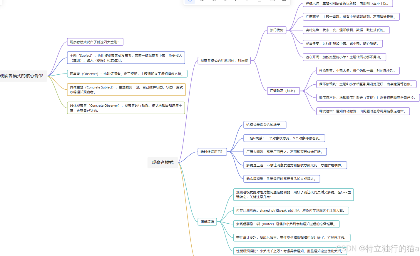- 解耦大师:主题和观察者各玩各的,内部细节互不干扰。