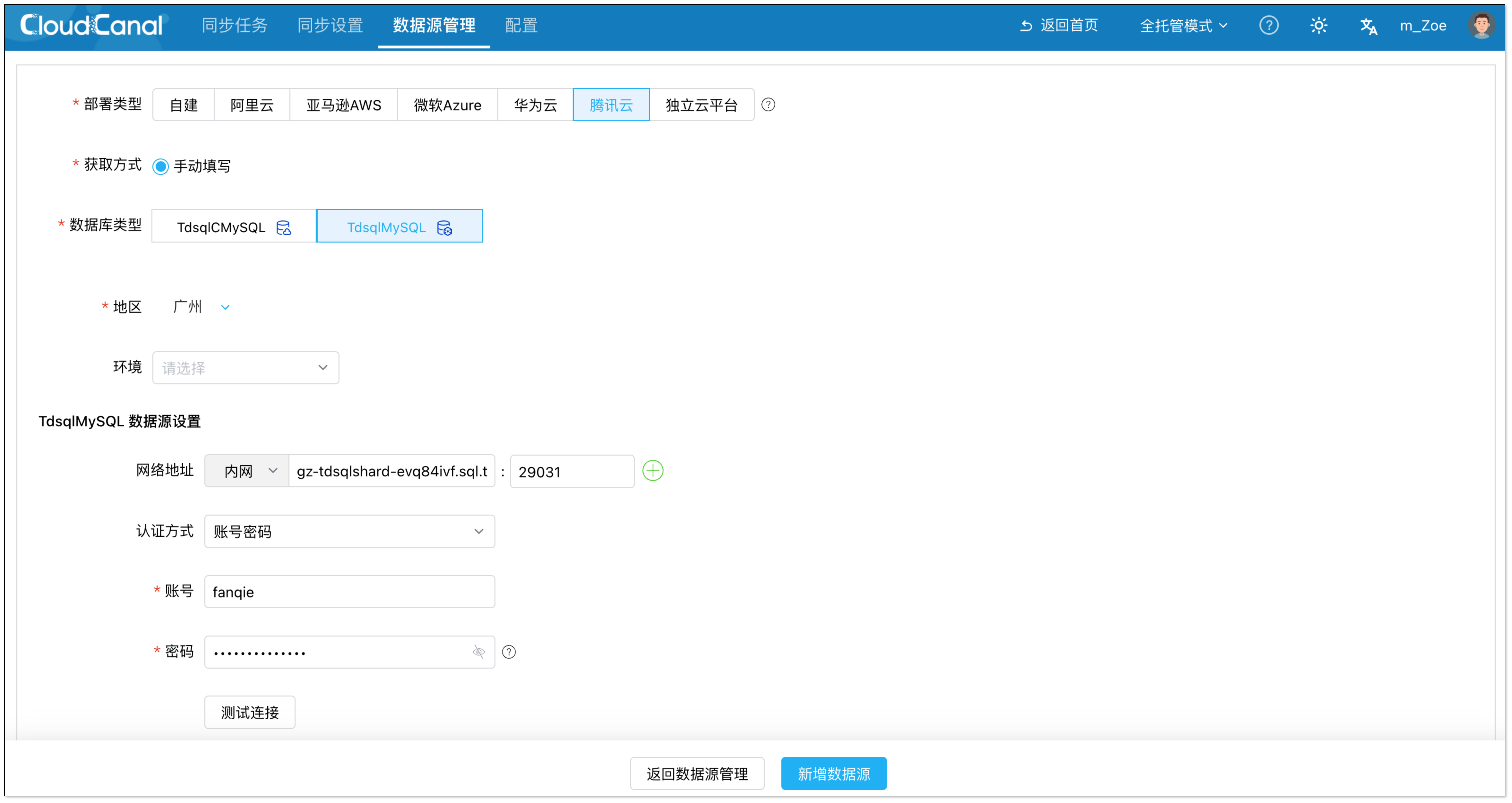 - 点击 数据源管理 > 新增数据源。