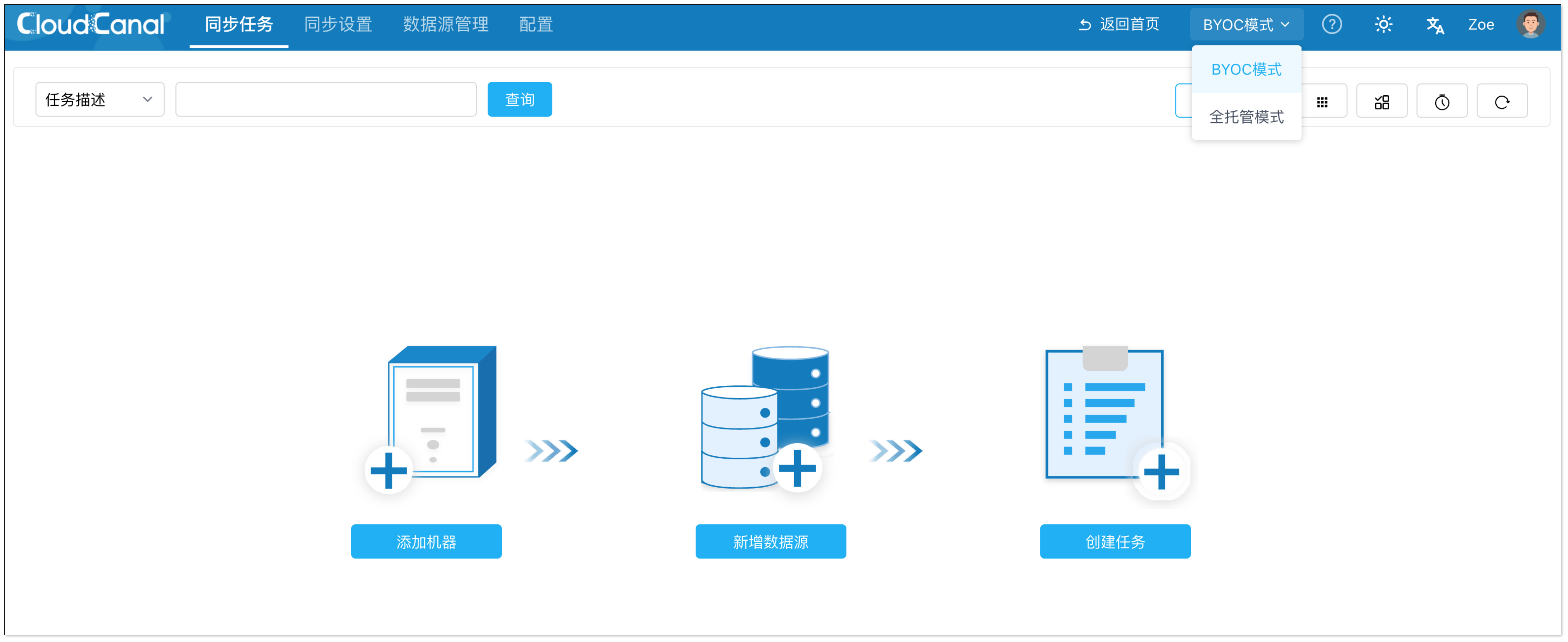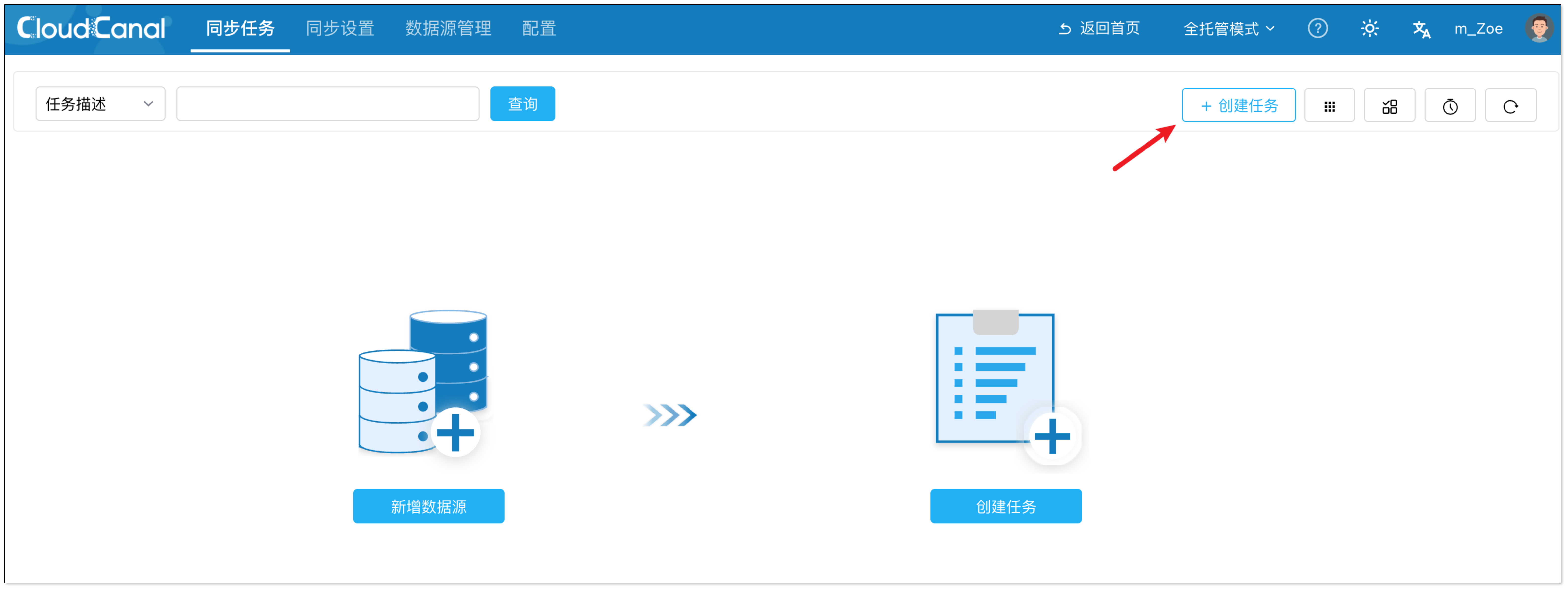 - 点击 同步任务 > 创建任务。
