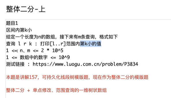 // 本题是讲解157,可持久化线段树模版题,现在作为整体二分的模版题