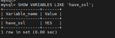 步骤1: 确认主库已启用 SSL,返回为YES,代表已启用,一般MySQL8.0默认开始SSL。