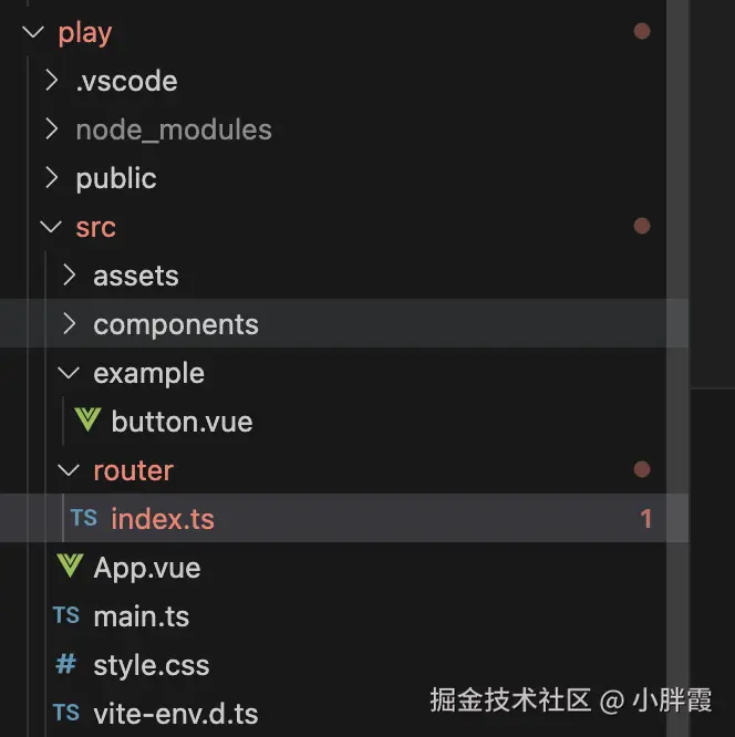 在play的src下新建example,存放各个组件的代码,先在play下安装vue-router