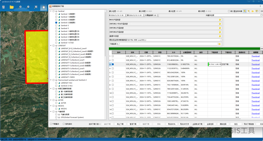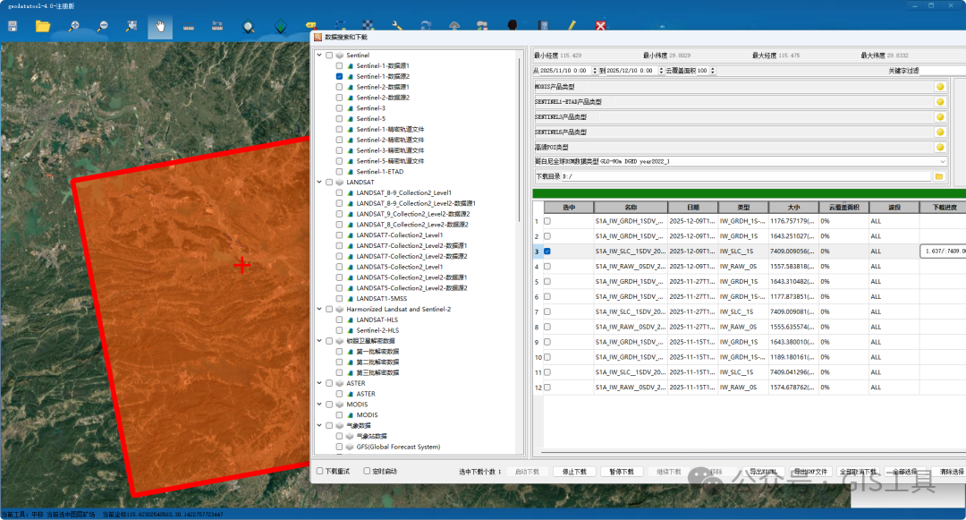 刚刚制作了全国矿场地图更新20251225后,我想试试可不可以用Sentinel-1 (SAR)和 Sentinel-2 (光学) 监测一下矿场的采掘进度!我利用地图资源下载工具(geodatatool),下载了Sentinel-1 (SAR)和 Sentinel-2 (光学) 数据!