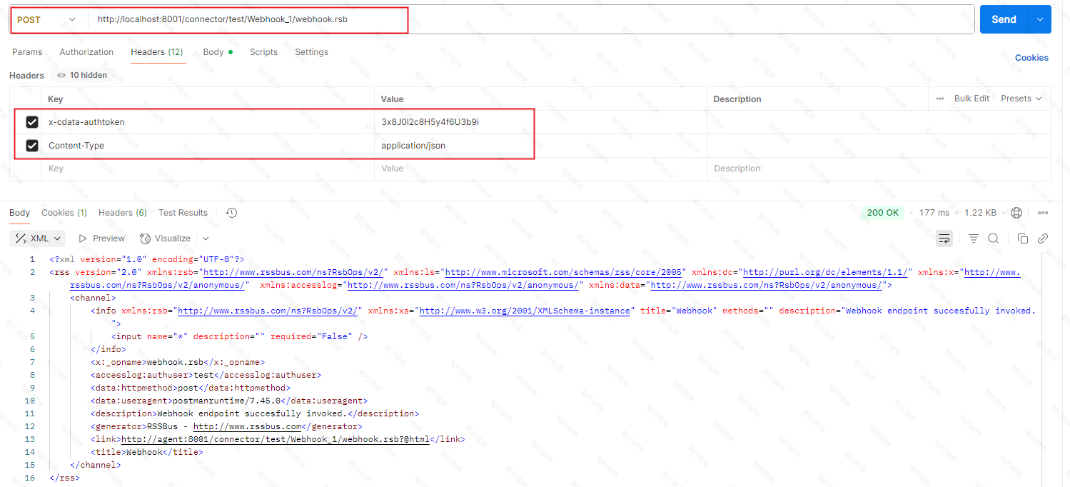 x-cdata-authtoken:填入 Webhook 端口自动生成的 Authtoken 值。