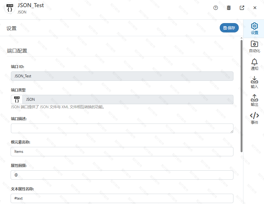 配置JSON端口,与XMLMap端口相连,可将XML文件自动转换为JSON文件回传给交易伙伴。
