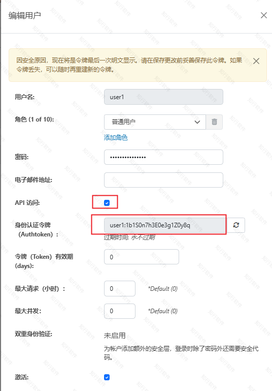 x-cdata-authtoken:在知行之桥系统设置->用户,选择非运维权限的用户,勾选API访问,会自动生成一个Authtoken 值,填写该值。注意需妥善保存该token,因安全原因该值只在第一次创建时以明文显示。