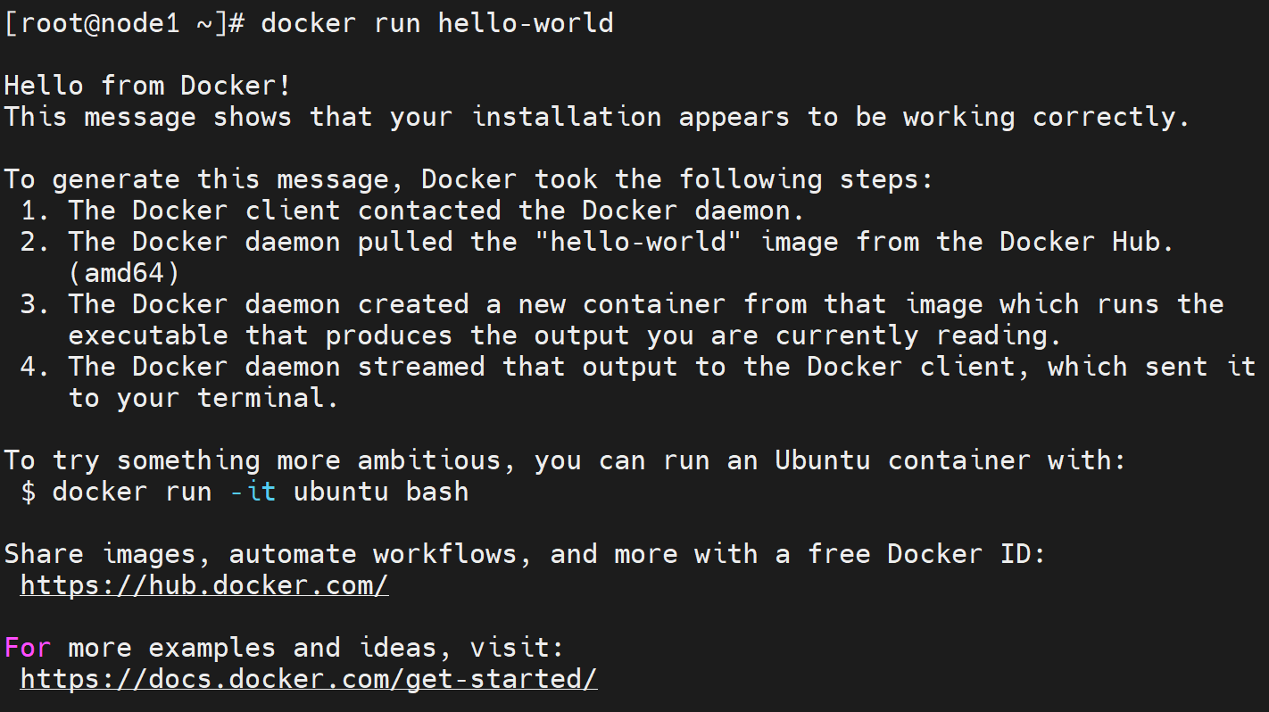 运行一个简单的测试容器,确保 Docker 正常工作: