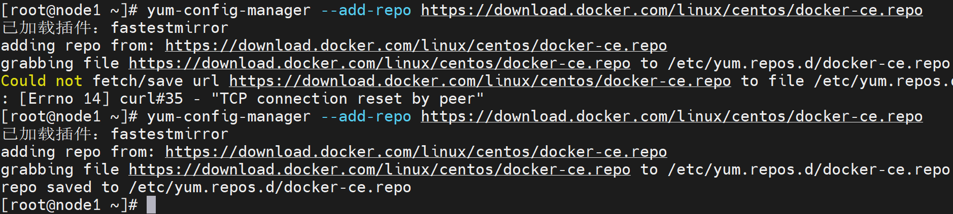 !老铁你切记,有的电脑显示下边这个是两行,实际上是一个命令!bashsudo yum-config-manager --add-repo https://download.docker.com/linux/centos/docker-ce.repo不是每次都会成功,一次不行就再来一次