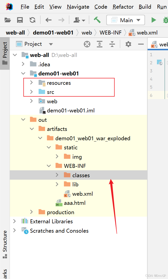 注意:这里的classes是上面的src和resources编译合并到一起生成