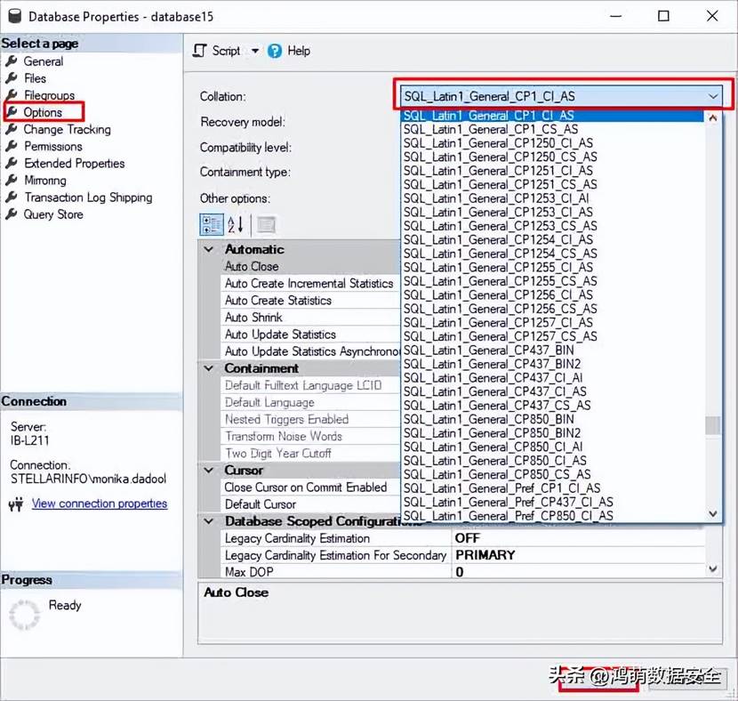 注意:当更改数据库排序规则时,系统表中的char、varchar和text列及其参数和用户定义数据类型也会更改为新的排序规则。如果在安装 MS SQL Server 时遇到服务器级排序规则问题,则可以尝试更改服务器排序规则。
