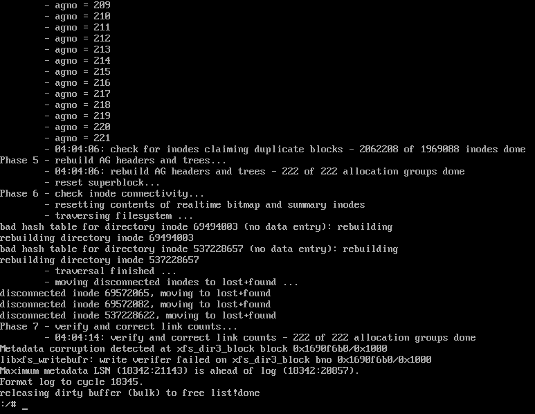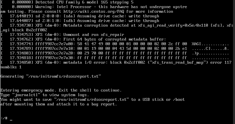 看报错信息是因为XFS 文件系统的元数据损坏,导致系统进入紧急模式