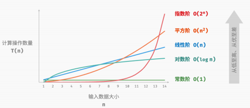 常数阶 < 对数阶 < 线性阶 < 线性对数阶 < 平方阶 < 指数阶 < 阶乘阶
