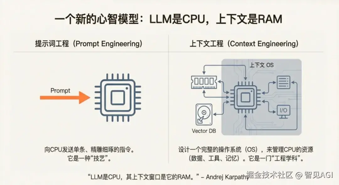 2025年,一场静悄悄的革命正在发生。顶尖AI团队不再执着于"炼"出更强大的模型,而是在构建一个全新的范式------上下文工程(Context Engineering)。这就像从手工打磨单块CPU,跃迁到设计整个操作系统。而这场跃迁,将决定未来AI应用的真正壁垒。