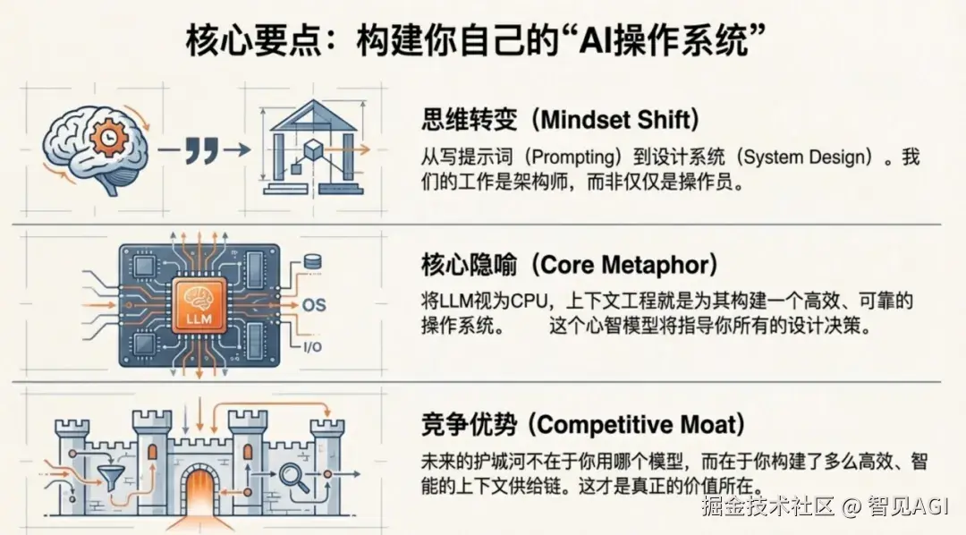 我们正站在AI工程的转折点上。当模型"智商"提升的边际效益递减,"上下文OS"的效率革命才刚刚开始。谁能率先构建出下一代操作系统,谁就能占据先机。记住,我们拥有的不是有遗忘症的天才实习生,而是一个亟待被精心设计操作系统的CPU。而你的工作,就是成为那个架构师。