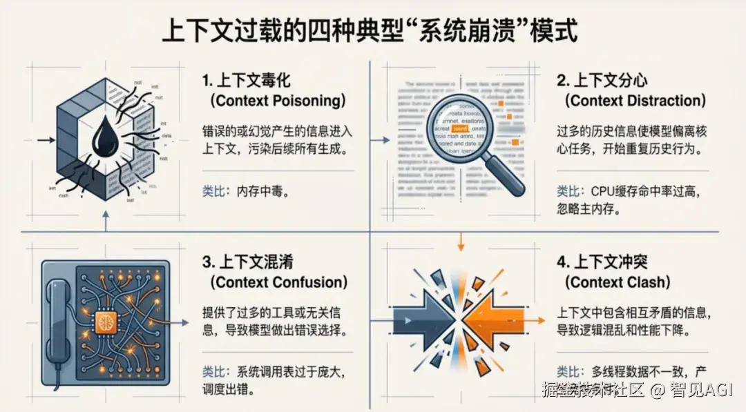 上下文过载会导致四种典型的"系统崩溃"模式,每一种都足以让生产级应用瘫痪: