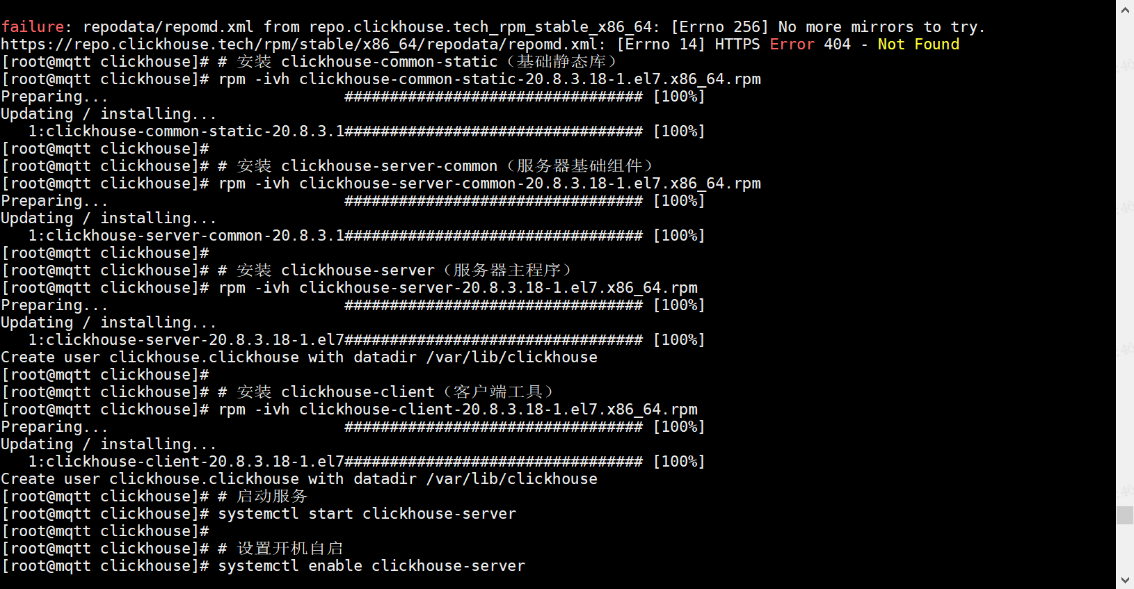 rpm -ivh clickhouse-common-static-20.8.3.18-1.el7.x86_64.rpm