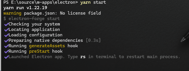 "start": "electron-forge start",