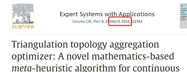 三角拓扑聚合优化器(Triangulation Topology Aggregation Optimizer, TTAO)可是个"新星"算法。它由成果人于2024年3月发表在SCI一区顶刊 Expert Systems With Applications 上。不过目前引用量几乎为零,咱要是先用起来,那妥妥就是创新呀!