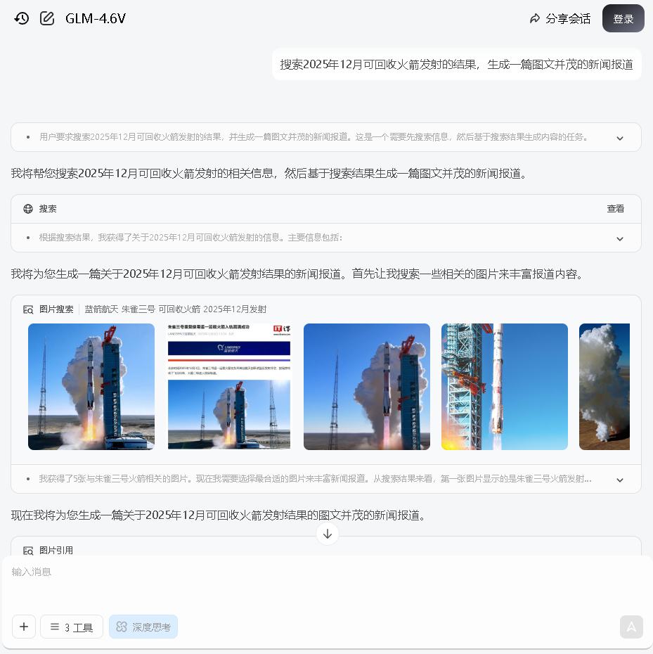 上传图文混杂的论文、研报或仅给出一个主题,GLM-4.6V-Flash可自动完成"关键信息抽取→候选图片匹配→视觉质量审核→图文混排输出"全流程。对于个人创作者或小微企业 ,无需支付API调用费用,本地部署后即可搭建专属图文创作工具:输入一篇行业研报,模型能提取核心观点并匹配示意图,生成可直接用于公众号、小红书的结构化内容;甚至支持批量处理产品图文素材,自动生成电商详情页文案。