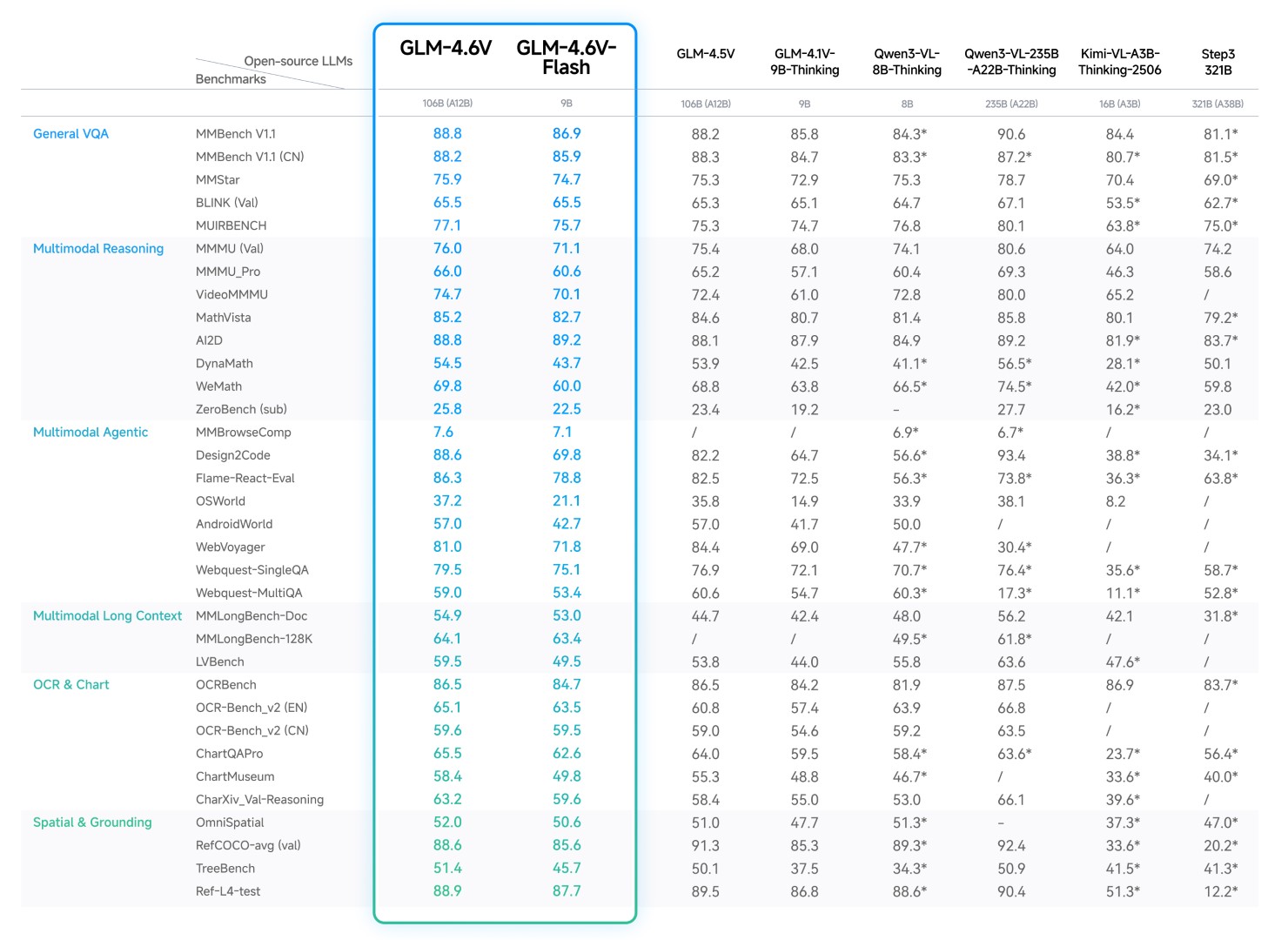关键亮点在于:GLM-4.6V-Flash这种"轻量体量+旗舰级能力"的组合,让开源多模态模型首次具备了与闭源模型竞争的潜力。