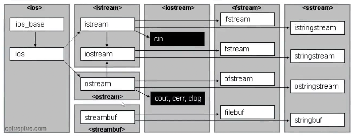 **(1)整个IO流体系,看不懂不要紧:**IO流涉及类和对象,运算符重载、继承等很多面向对象的知识,这些知识我们还没有讲解,所以这里我们只能简单认识一下C++ IO流的用法,后面我会专门出一篇来细节IO流库。