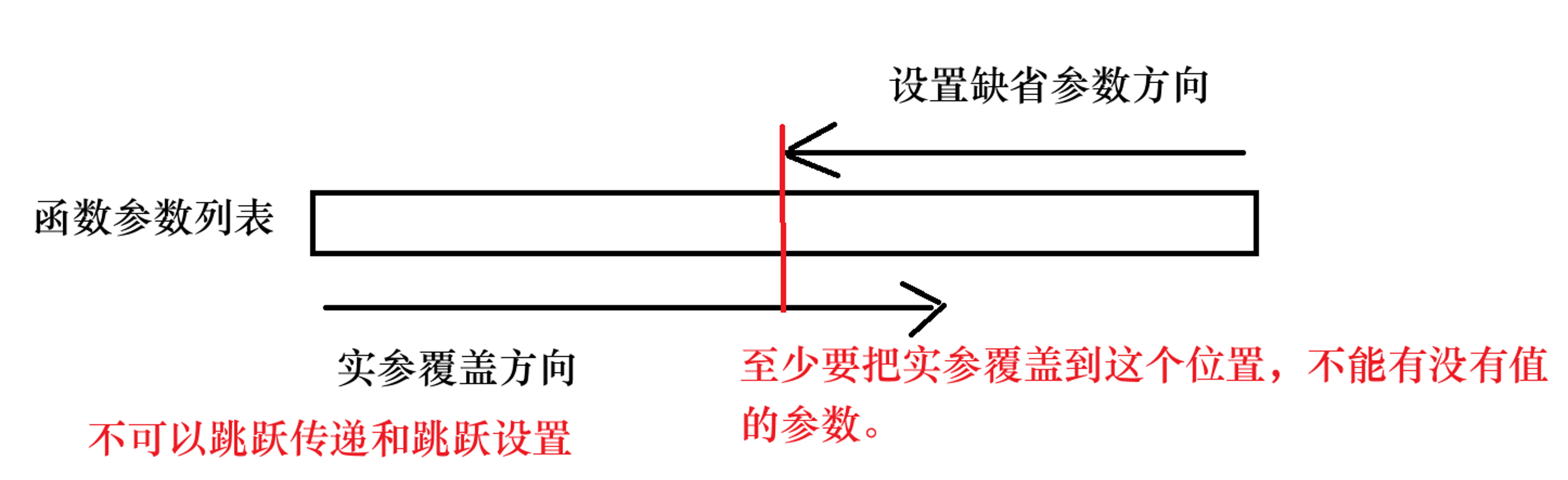 - func(a=1, b, c=3, d=4) 是错的,因为跳过了 b。