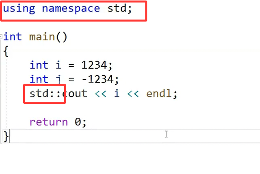 (2)**使用注意:**cout/cin/endl等都属于C++标准库,C++标准库都放在一个叫std(standard)的命名空间中,所以要通过命名空间的使用方式去用他们。