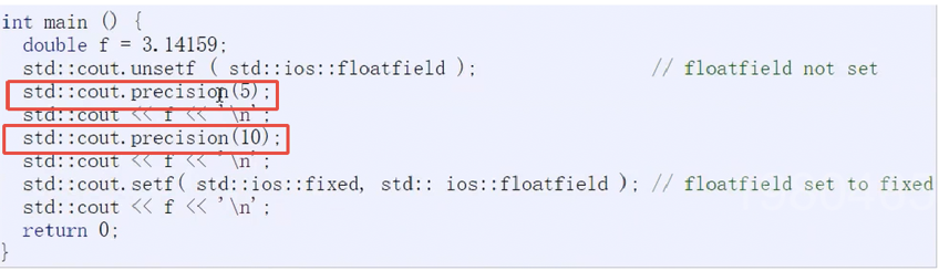 (4)精度控制小巧思: C++可以控制小数点,但是有点麻烦,需要精度控制函数:调用cout这个对象------>.调用精度控制函数precision。