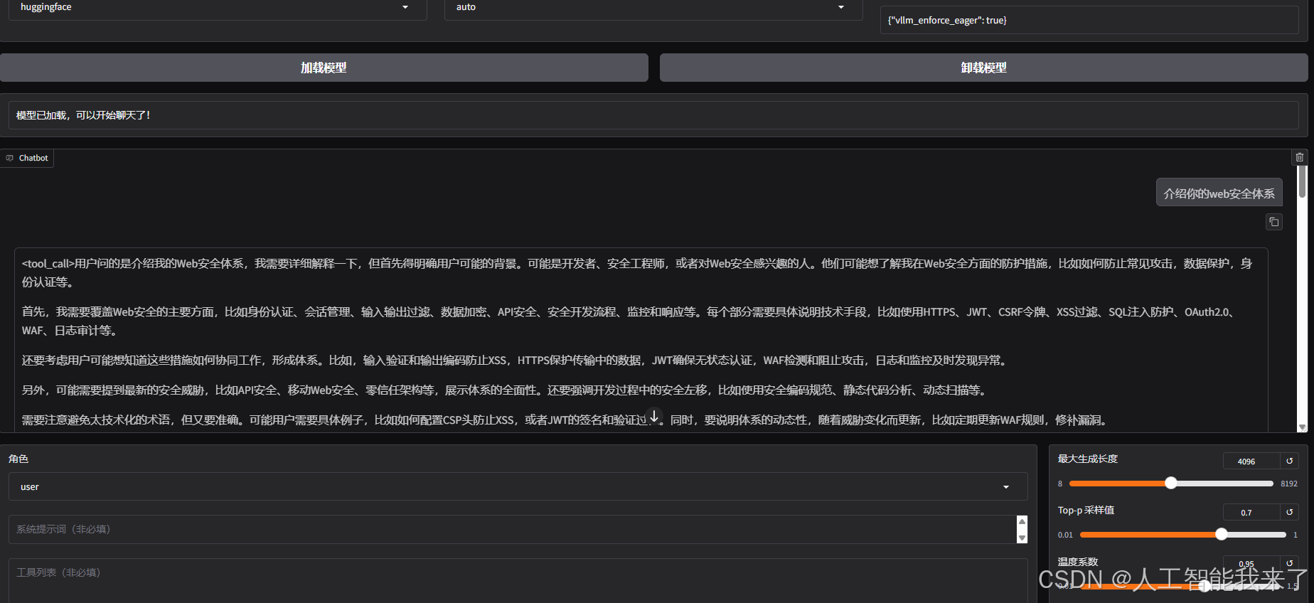 效果验证(注意调一下最大生成长度,默认的 1024 比较小,非常容易截断):