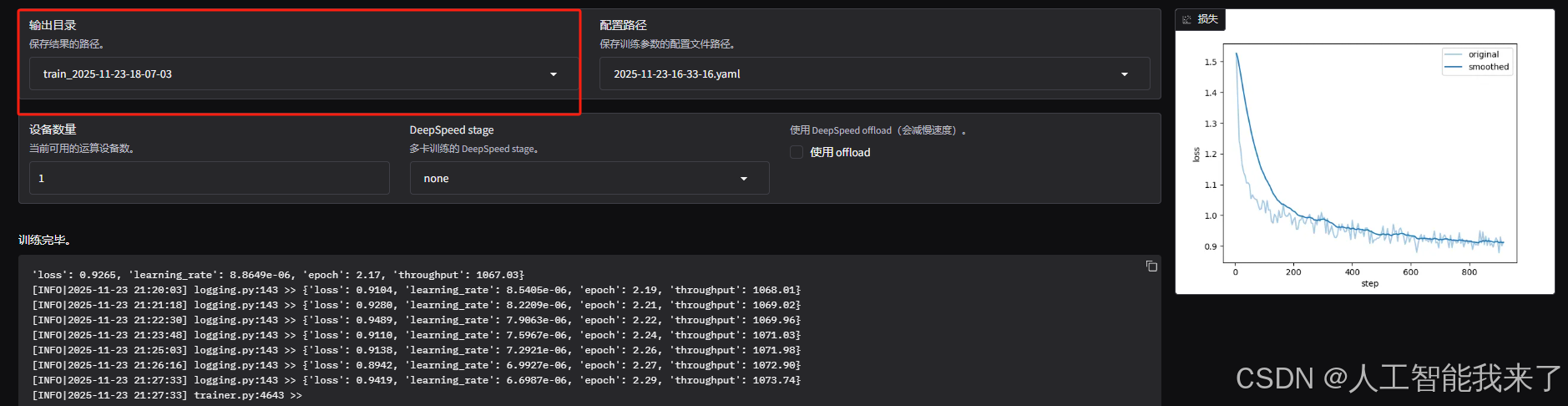 微调任务完成后,我们进入在启动微调时,设定的输出目录: