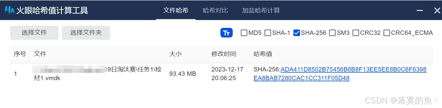 1、提取检材的SHA256值,并以此作为 flag提交。 (全小写) (3分)