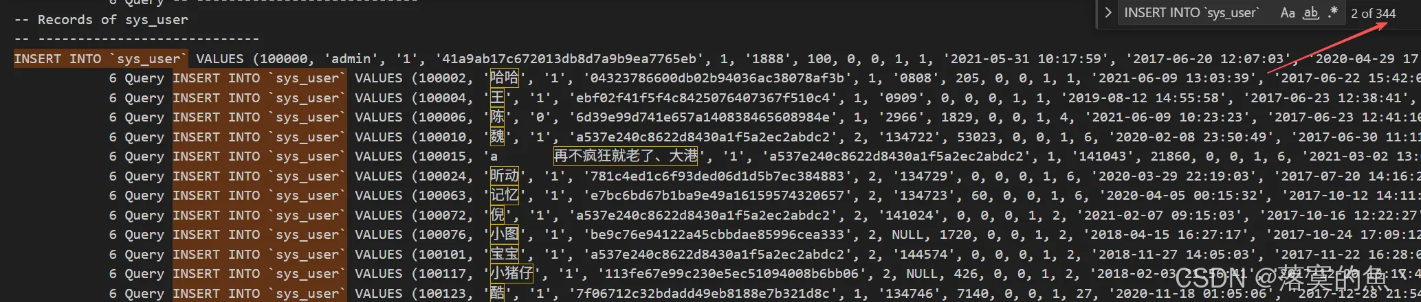 直接搜关键字的表 INSERT INTO sys_user