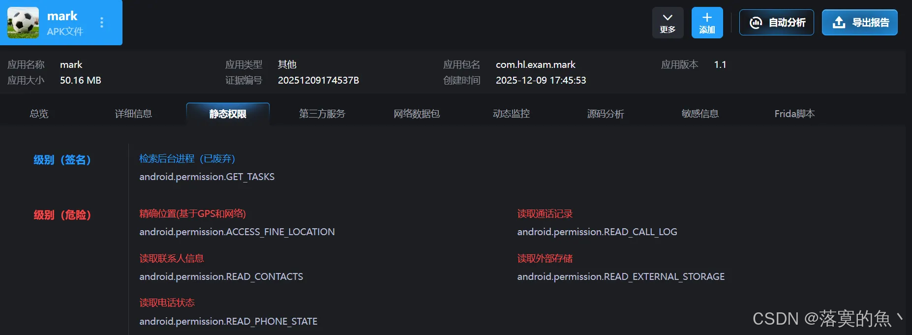 雷电分析 发现有五个 可以看到读取了通讯录和电话权限