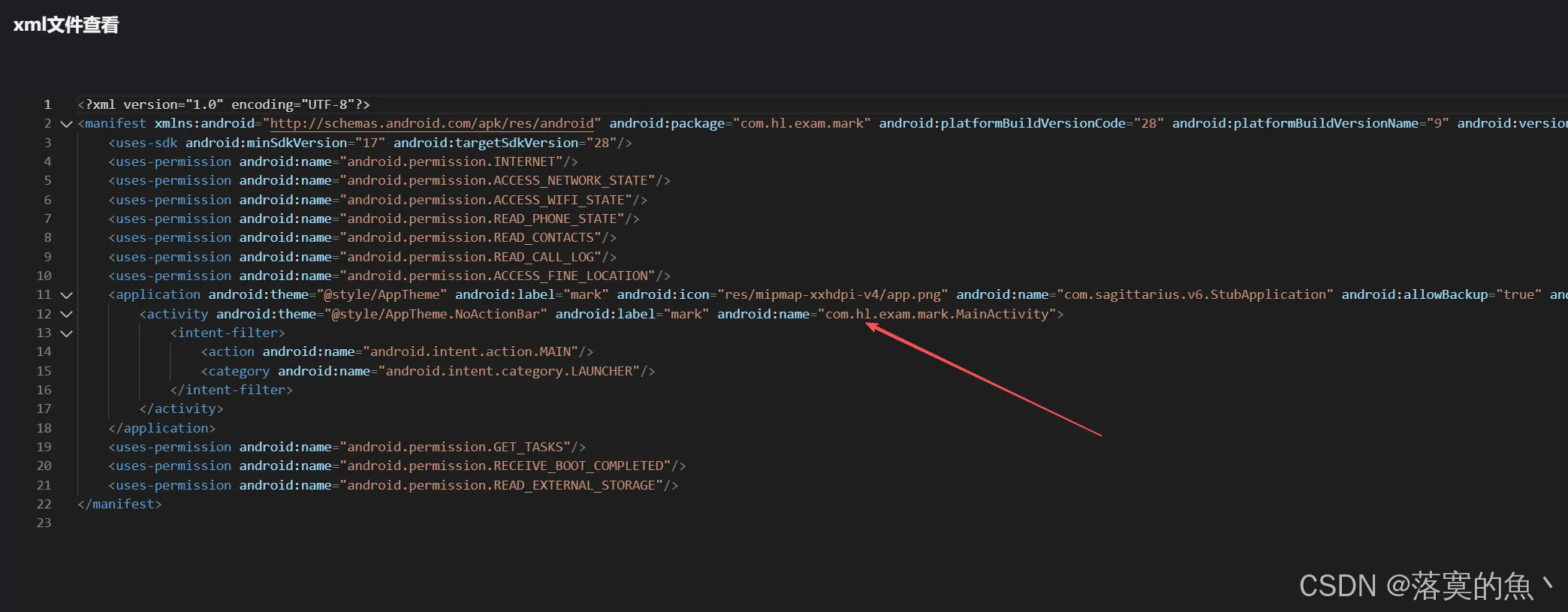 正确答案:com.hl.exam.mark.MainActivity
