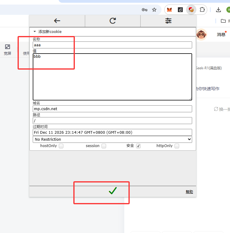 安装完成后,可以自由添加cookie: