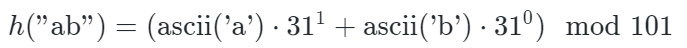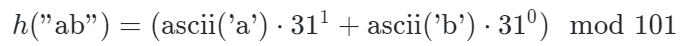 - 计算文本字符串 "abc" 的前两个字符的哈希值: