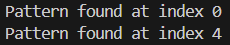 text中每个长度为 4 的子串的哈希值。 - 比较哈希值,如果匹配,则进一步比较实际字符串,确认是否真正匹配。