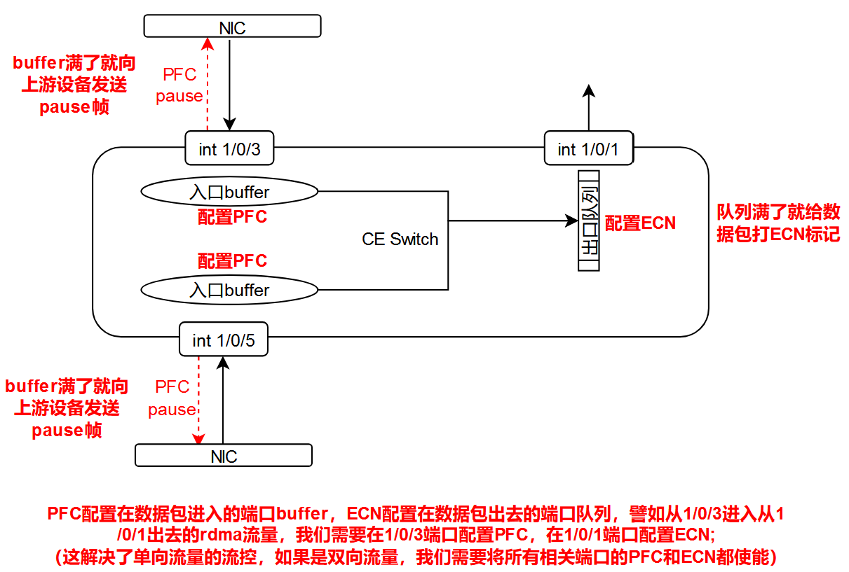 - 拥塞控制算法适配:发送端需支持基于 ECN 反馈的速率调整(如 TCP 的 ECE 标志位、RoCE 的 DCQCN 算法)。