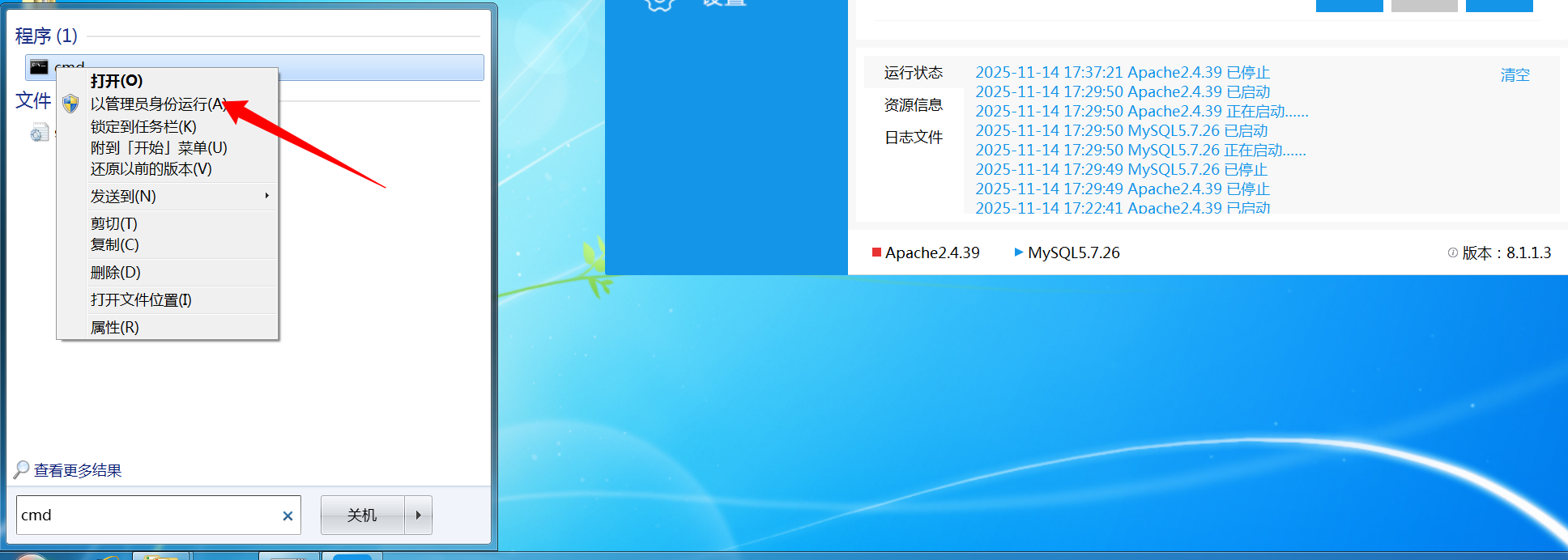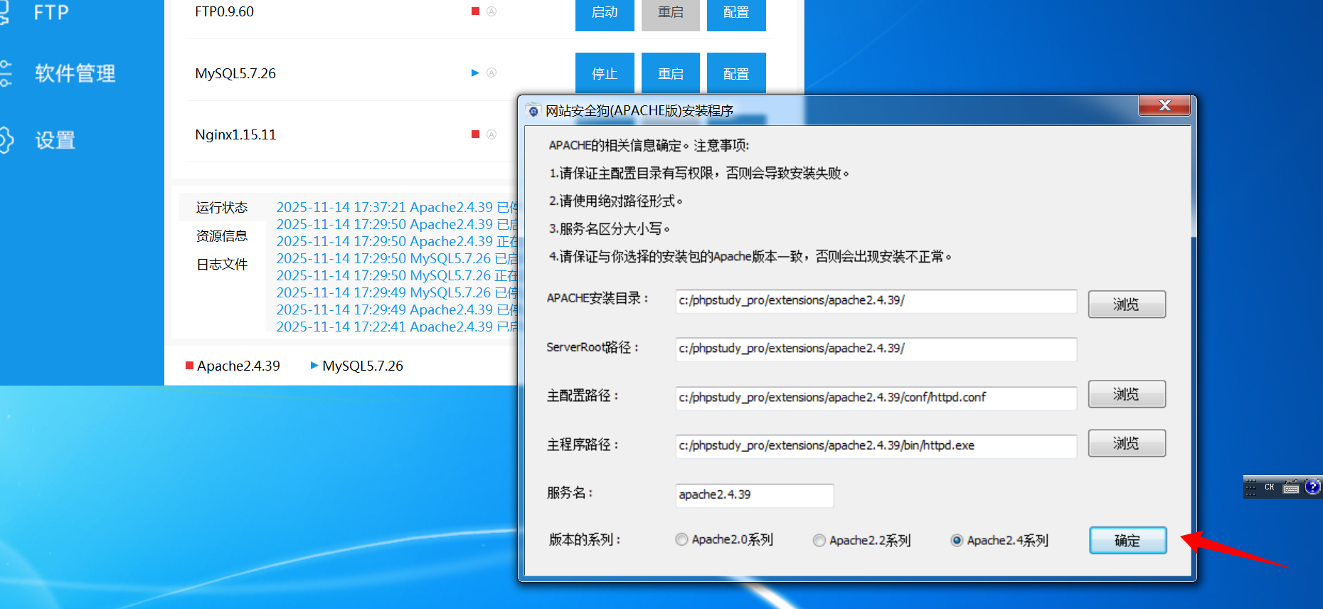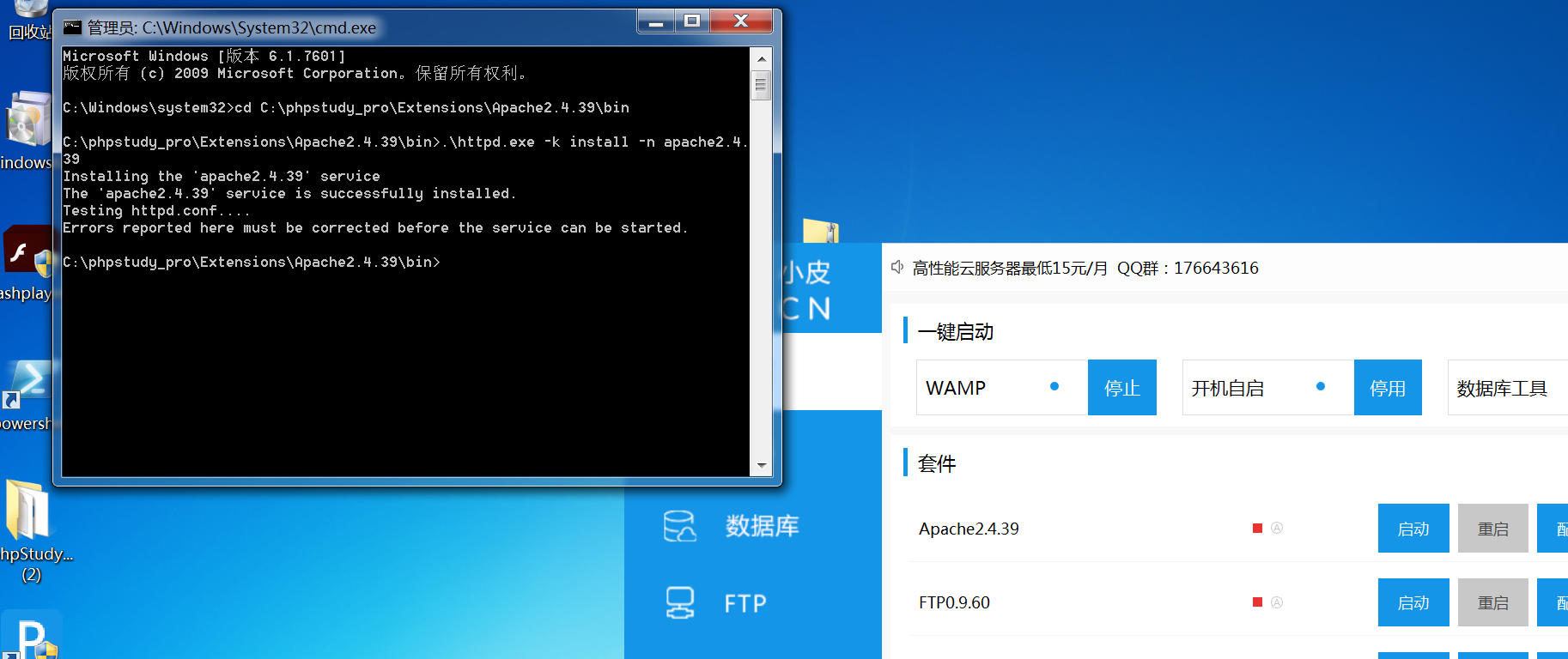 启动apache 2.4.39和 MYSQL5.7.26应用