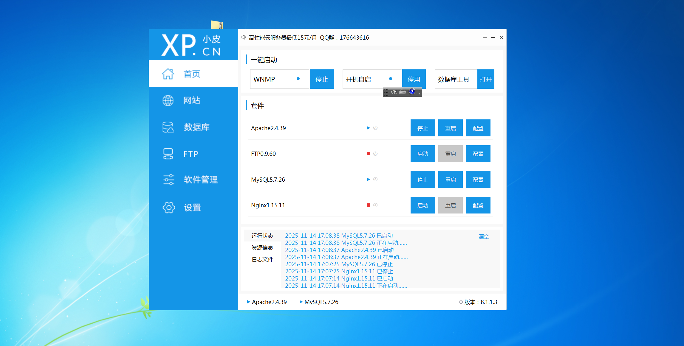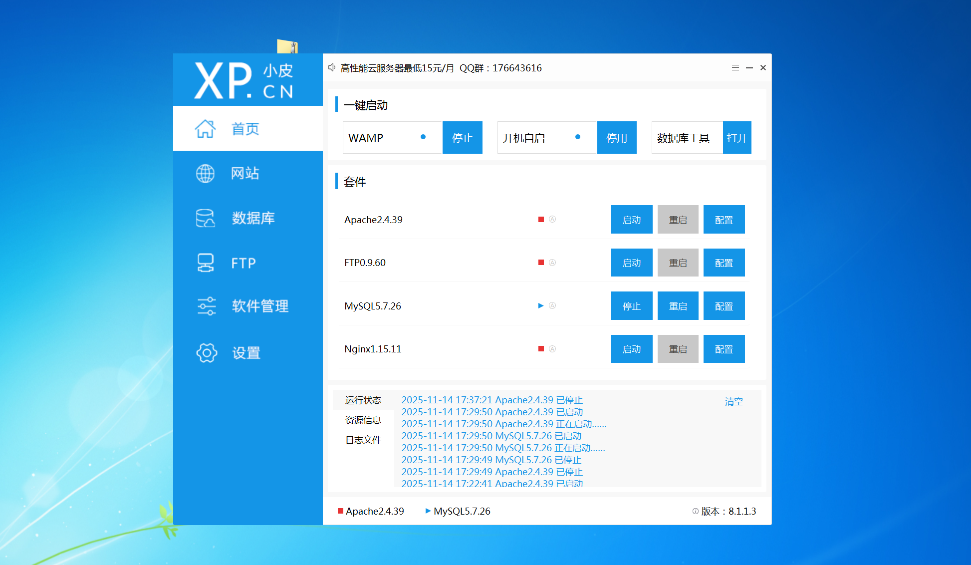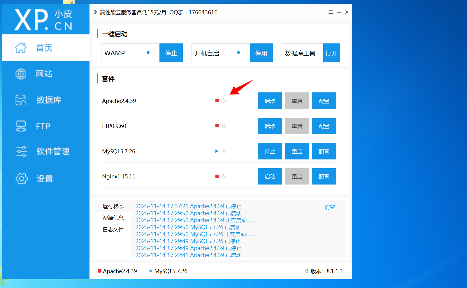 启动apache 2.4.39和 MYSQL5.7.26应用