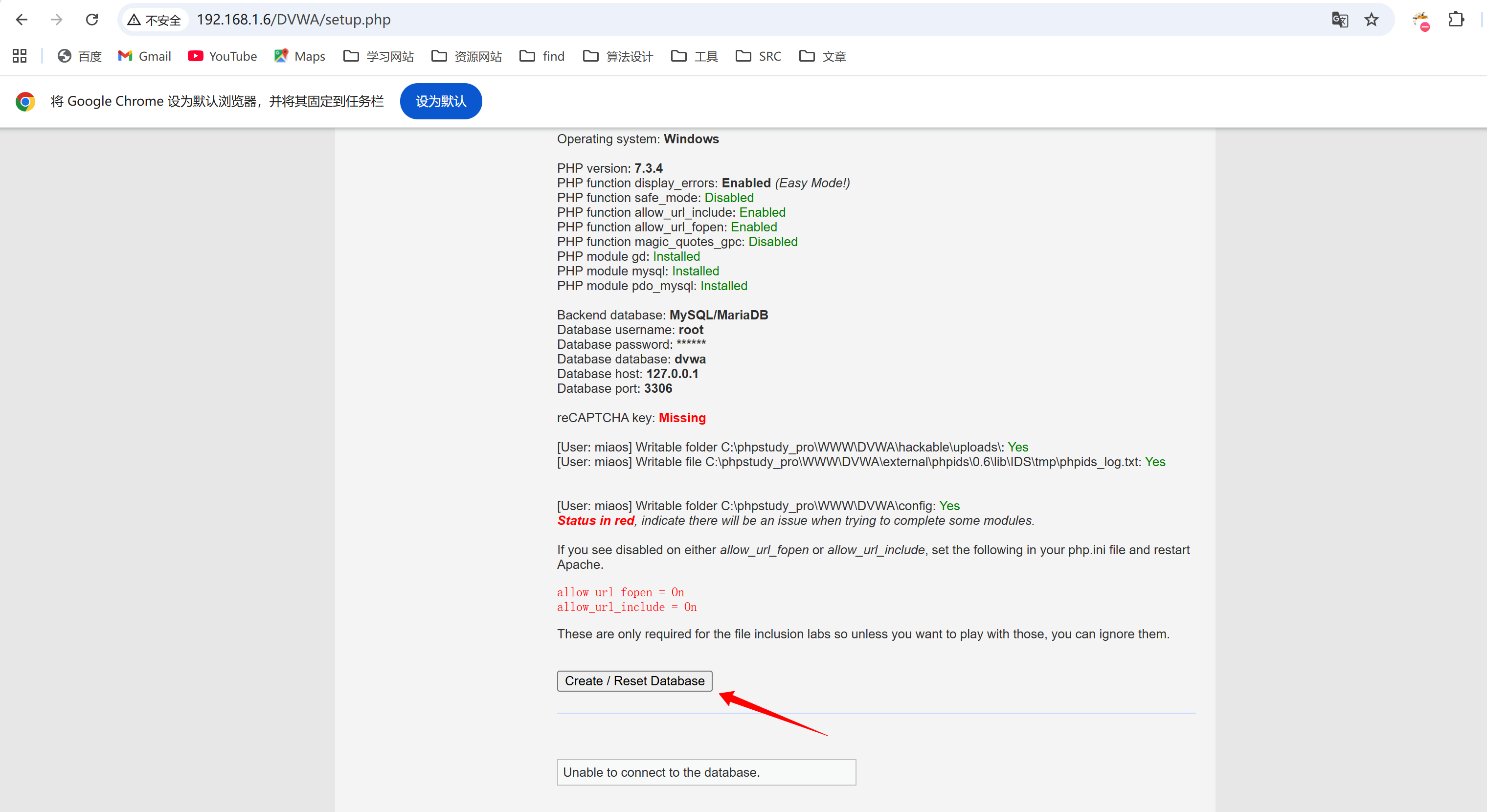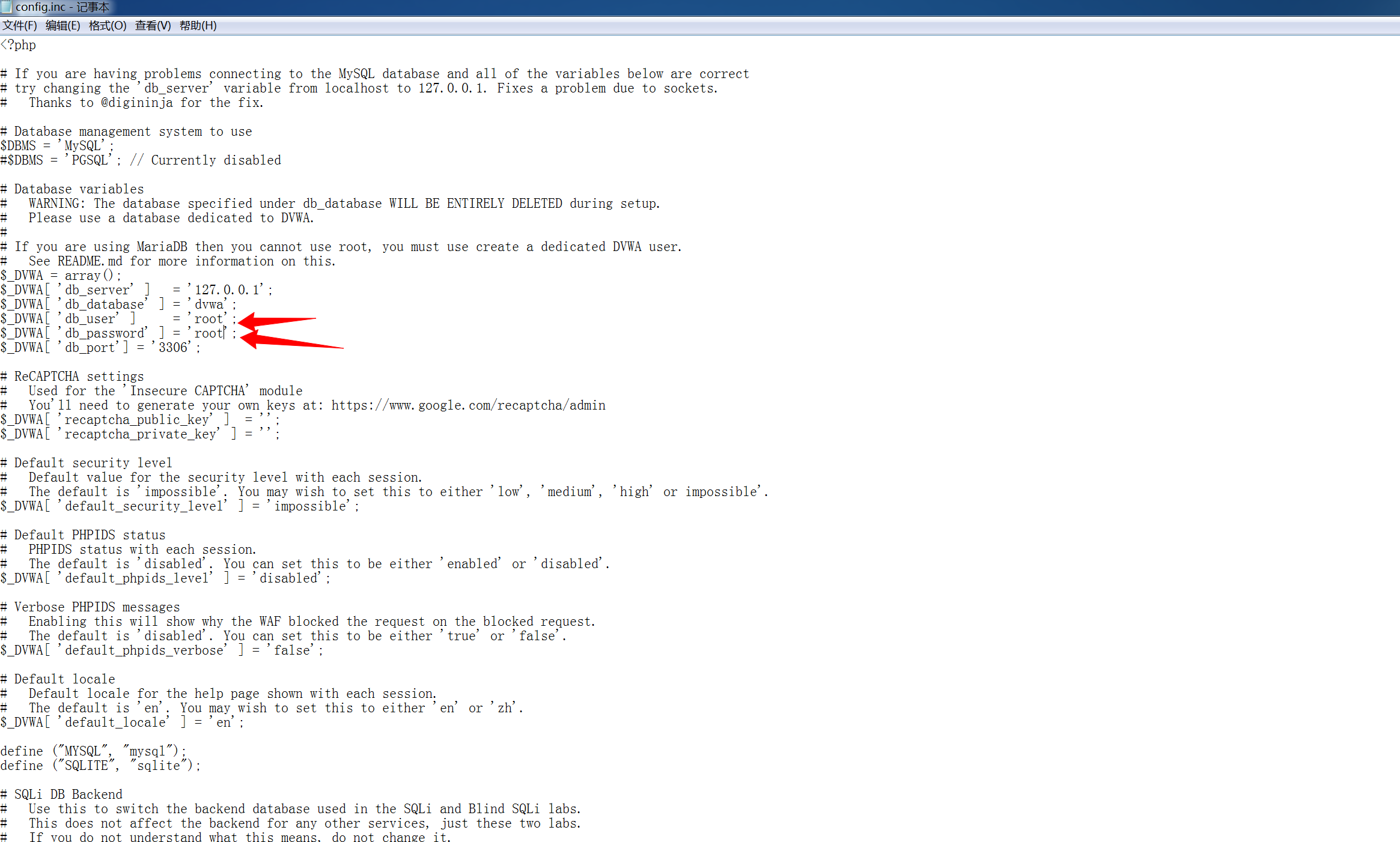 编辑C:\phpstudy_pro\WWW\DVWA\config\config.inc.php